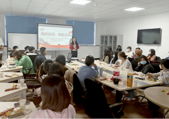 “我来自山西”“我来自重庆”“我来自河南”“我来自陕西”……10月7日14时,来自五湖四海的声音在数管学院A402会议室陆续响起。当天,数管学院举行“我的祖国,我的大学”国庆主题茶话会,学院专职辅导员魏晓瑄老师和已到校的连锁经营、会计、电子商务等专业2022级新生欢聚一堂,共同庆祝中华人民共和国成立73周年。