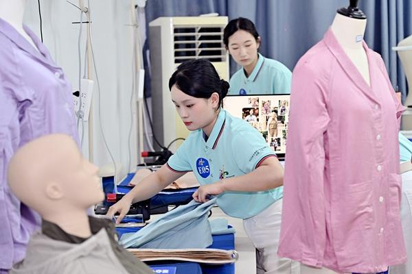 8月18日至22日,2025年世界职业院校技能大赛总决赛争夺赛纺织服装赛道(高职组)在成都纺织高等专科学校举行,共有来自全国各地66所高职院校的77支代表队参赛。本次大赛以“技炫青春 能创未来”为主题,突出“精湛技能、青春风采、美好生活”三大元素,共设置42个赛道。据了解,此次大赛紧密对接纺纱工、织布工、染色工、印花工、服装设计师、服装制版师、纺织品检验人员等职业岗位能力要求,结合企业生产需求及国家职业标准设置赛项。图为参赛选手在比赛中。成都纺织高等专科学校供图