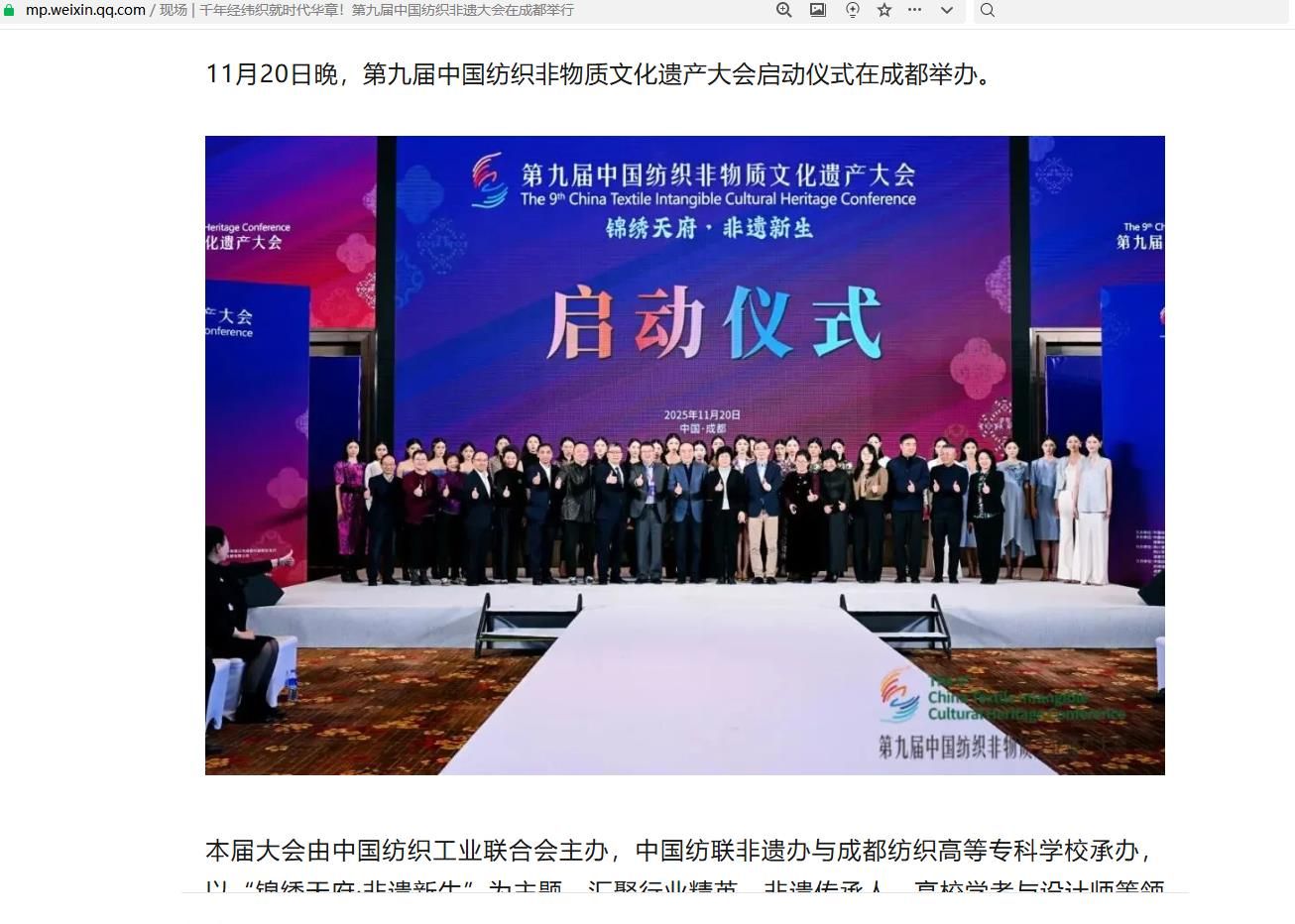11月20日晚,第九届中国纺织非物质文化遗产大会启动仪式在成都举办。