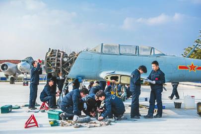 成都航空职业技术学院通用航空器维修专业学生正在进行飞机应急抢修实作训练。