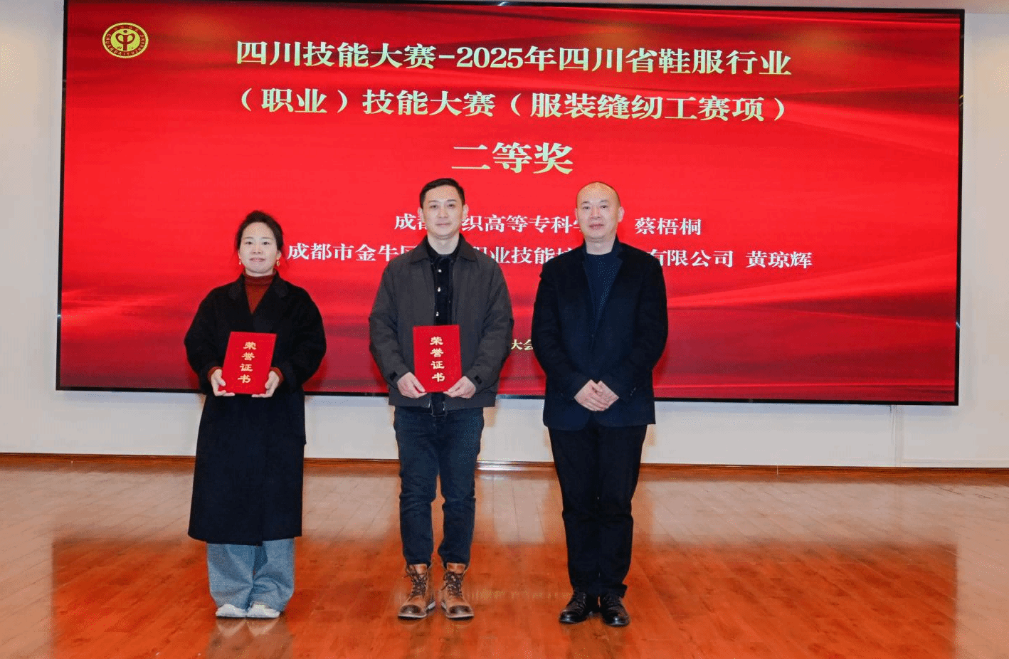 服装学院蔡梧桐老师凭借扎实的专业技能与出色的现场表现,荣获四川技能大赛——2025年四川省鞋服行业(职业)技能大赛服装缝纫工赛项二等奖,展现了我校教师队伍优秀的专业素养与过硬的实战能力。