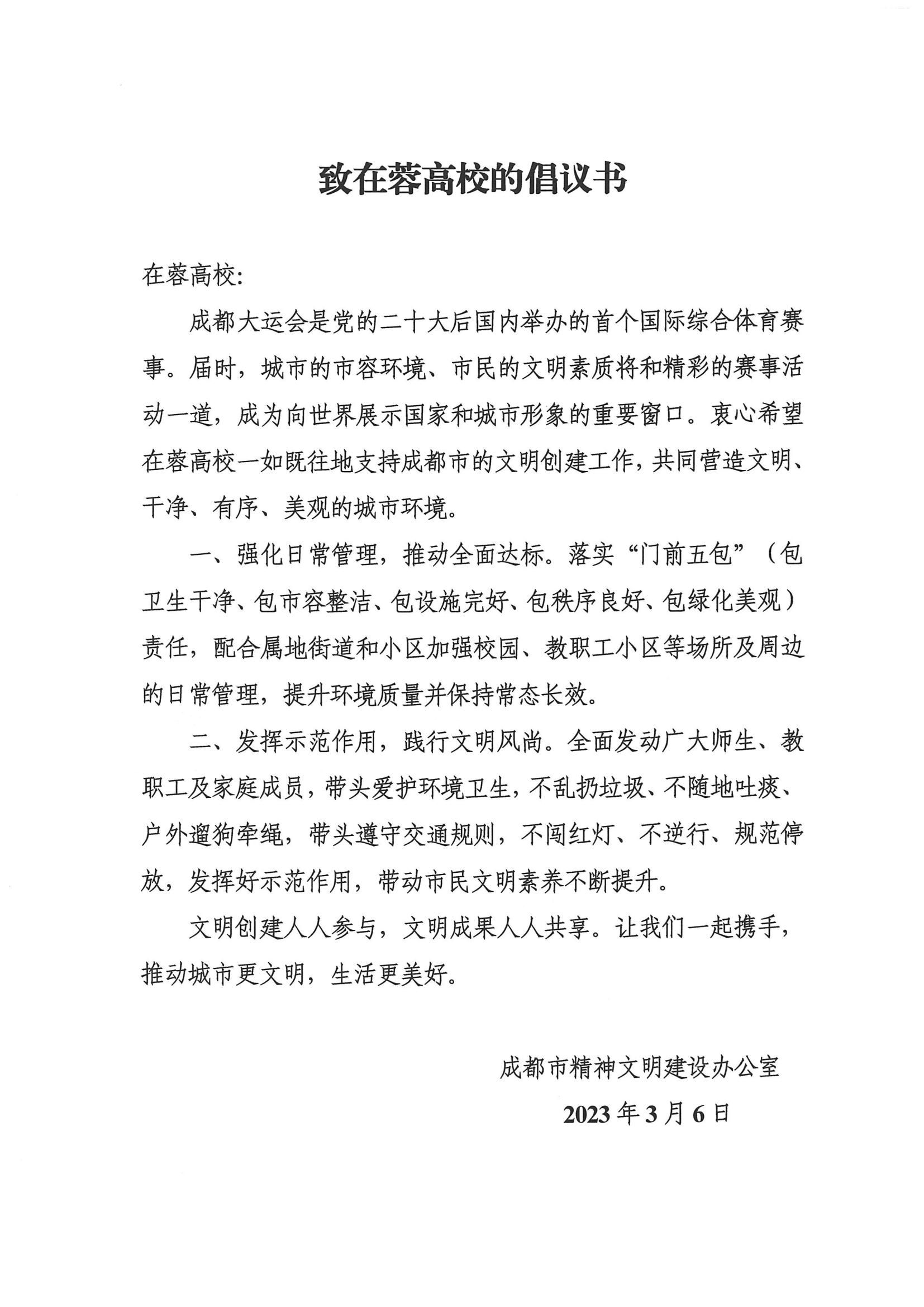 市文明办《致在蓉高校的倡议书》