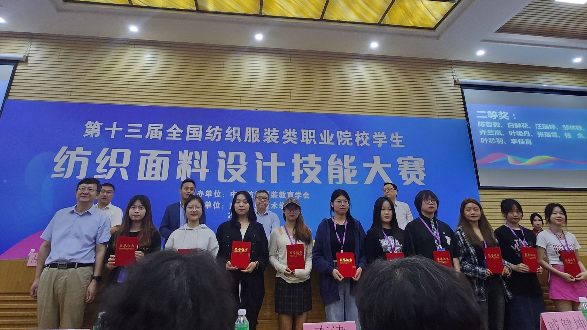 10月27日至28日,由中国纺织服装教育学会主办的第十三届全国纺织服装类职业院校学生纺织面料设计技能大赛在广东职业技术学院举行,我校艺术设计与创意学院学生斩获二等奖1个、三等奖2个。