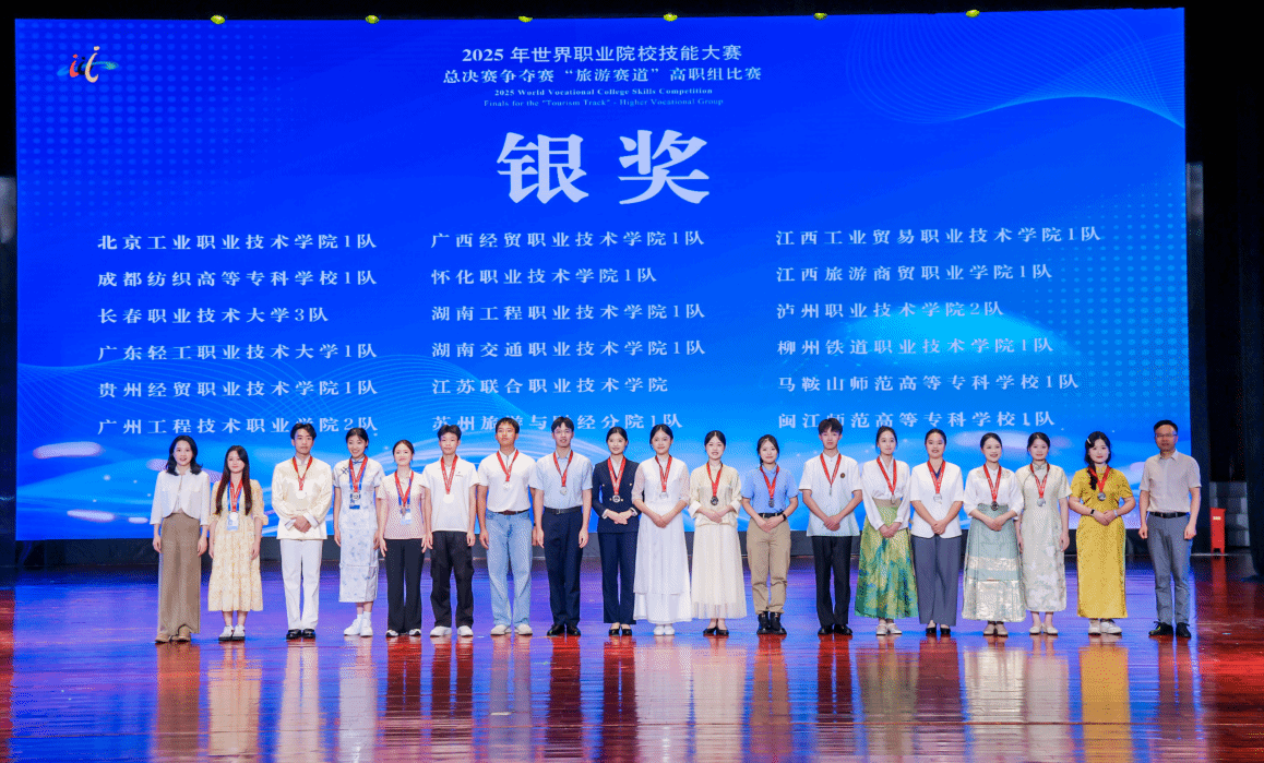 8月24日至27日,备受瞩目的2025年世界职业院校技能大赛总决赛争夺赛“旅游赛道”在浙江杭州举行。来自全国32个赛区的174支代表队同台竞技,经过激烈角逐,我校文旅学院参赛团队荣获银奖,团队成员包括刘棚、赵莉萍、邹熙乐、高小凤,指导教师为杨婷婷教授、吕晞梅教授。