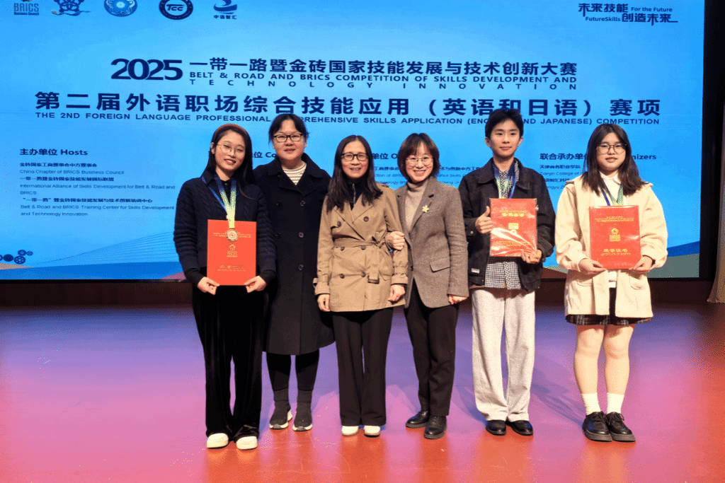 10月31日至11月2日,2025“一带一路”暨金砖国家技能发展与技术创新大赛第二届外语职场综合技能应用赛项全国总决赛在天津商务职业学院举行,全国83支队伍、249名选手同台竞技。我校两支学生团队获全国三等奖1项、优秀奖1项。