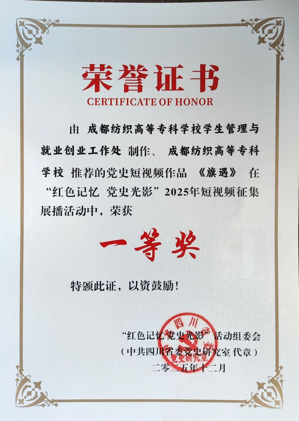 12月11日,由中央党史和文献研究院第七研究部指导,四川省委党史研究室等多部门联合主办的“红色记忆·党史光影”2025年四川省优秀党史短视频展播暨主题党课活动在攀枝花市落幕。我校报送的原创短视频《旗遇》,从全省955部参赛作品中脱颖而出,荣获一等奖。